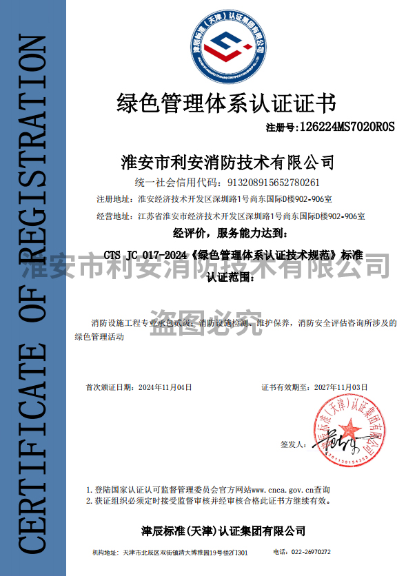 綠色管理體系認(rèn)證證書(shū)